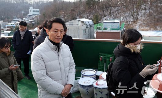 (서울=뉴스1) 김명섭 기자 = 오세훈 서울시장이 19일 서울 관악구 신림7구역에서 재개발 사업대상지 현장 점검을 하고 있다. 2026.1.19/뉴스1