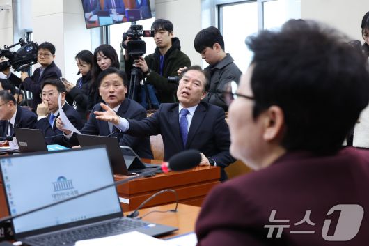 (서울=뉴스1) 신웅수 기자 = 정태호 더불어민주당 간사와 김영진 의원이 19일 서울 여의도 국회에서 열린 재정경제기획위원회 전체회의에서 이혜훈 기획예산처 장관 인사청문회와 관련해 임이자 위원장에게 항의하고 있다. 2026.1.19/뉴스1phonalist@news1.krCopyright ⓒ 뉴스1. All rights reserved. 무단 전재 및 재배포, AI학습 이용 금지.