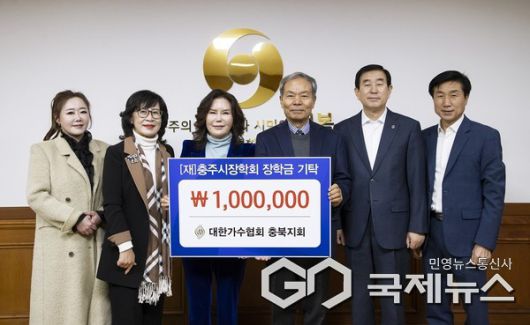 (충주=국제뉴스) 김상민 기자 = 충북 충주시는 지난 19일 대한가수협회 충북지회(지회장 홍실)가 지역 인재 양성을 위한 장학금 100만 원을 (재)충주시장학회(이사장 홍기배)에 기탁했다고 19일 밝혔다.