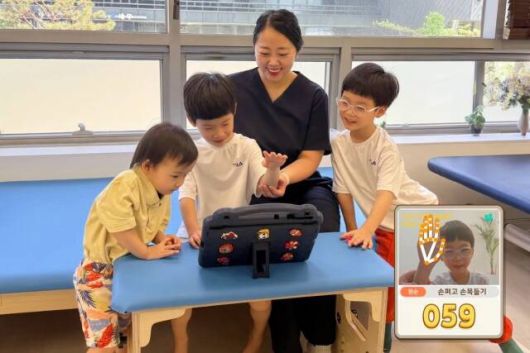 아이마음 탐사대 SPACE-1 단계 진출팀의 게임화 요소를 접목한 솔루션을 아이들이 동작을 취하며 따라하고 있다. /현대해상 |