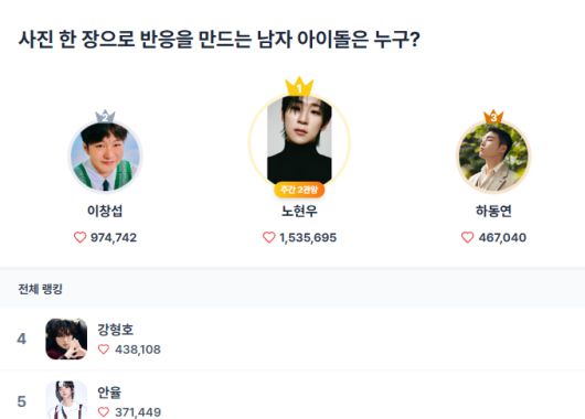 노현우를 필두로 이창섭 등 상위권 아티스트들의 활발한 활동과 팬들의 적극적인 참여는 K-POP의 미래를 더욱 밝게 전망하게 한다.