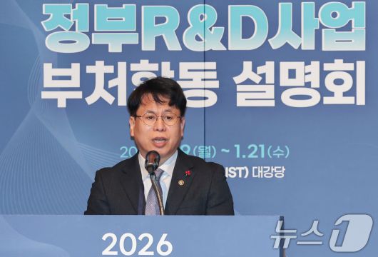 (대전=뉴스1) 김기태 기자 = 19일 대전 유성구 한국과학기술원(KAIST)에서 열린 정부 R&D 사업 부처합동 설명회에서 박인규 과학기술혁신본부장이 개회사를 하고 있다. 2026.1.19/뉴스1
