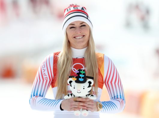 강원 정선 알파인경기장에서 열린 2018평창동계올림픽 알파인스키 여자 활강 경기에서 동메달을 딴 미국의 린지 본이 미소 짓고 있다. 2018.2.21 연합뉴스. |
