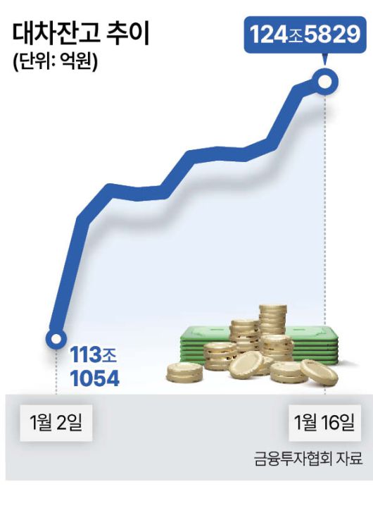 19일 금융투자협회에 따르면, 국내 증시 대차거래 잔고 규모는 지난 16일 기준 124조5829억원까지 치솟아 통계 집계 이후 최고치인 125조6193억원(2025년 11월 3일)에 근접하고 있다. 작년 9월 100조원을 돌파한 후 연말 들어선 소폭 하락세까지 보였지만, 새해 들어 다시 반등했고, 이제 역대 최고점 수준으로까지 급증한 상태다.