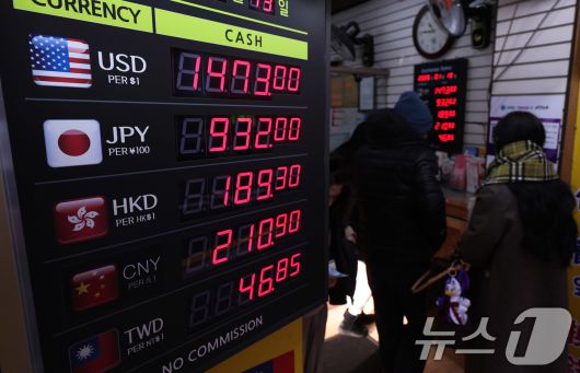(서울=뉴스1) 박지혜 기자 = 원·달러 환율이 다시 올라 1500원 선에 바짝 다가선 19일 서울 명동 환전소 전광판에 환율 시세가 나타나고 있다. 네덜란드계 글로벌 금융그룹 ING는 올해 한국 경제가 반도체 수출 호조에 힘입어 2.0%의 성장률을 기록할 것으로 전망했다. 하지만 원화 약세 압력이 지속되면서 달러·원 환율이 단기적으로 1500원 선에 도달할 수 있다고 내다봤다. 2026.1.19/뉴스1
