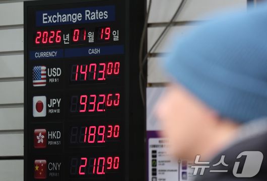 (서울=뉴스1) 박지혜 기자 = 원·달러 환율이 다시 올라 1500원 선에 바짝 다가선 19일 서울 명동 환전소 전광판에 환율 시세가 나타나고 있다. 네덜란드계 글로벌 금융그룹 ING는 올해 한국 경제가 반도체 수출 호조에 힘입어 2.0%의 성장률을 기록할 것으로 전망했다. 하지만 원화 약세 압력이 지속되면서 달러·원 환율이 단기적으로 1500원 선에 도달할 수 있다고 내다봤다. 2026.1.19/뉴스1