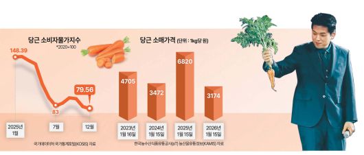 지선우 한국농촌경제연구원 농업관측센터 엽근채소팀장은 “2024년산 당근이 2025년 초(1~4월)까지 가격이 비교적 높게 형성되면서 재배 면적 확대로 이어졌다”며 “이후 국내 재배 면적 확대와 생산량 증가가 겹치면서 올해 당근 가격이 크게 하락한 것”이라고 설명했다.