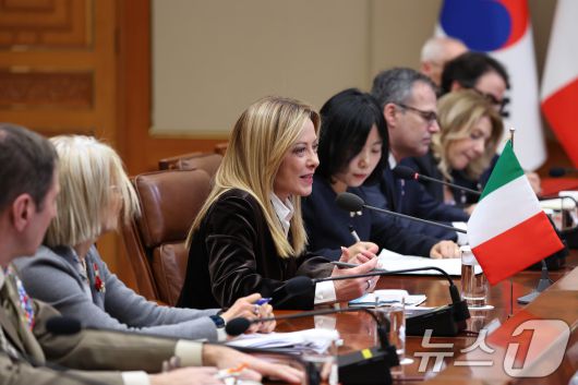 (서울=뉴스1) 이재명 기자 = 조르자 멜로니 이탈리아 총리가 19일 청와대에서 열린 이재명 대통령과의 확대회담에서 발언하고 있다. 2026.1.19/뉴스12expulsion@news1.krCopyright ⓒ 뉴스1. All rights reserved. 무단 전재 및 재배포, AI학습 이용 금지.