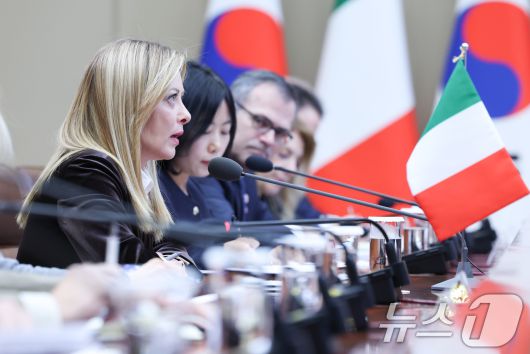 (서울=뉴스1) 이재명 기자 = 조르자 멜로니 이탈리아 총리가 19일 청와대에서 열린 이재명 대통령과의 확대회담에서 발언하고 있다. 2026.1.19/뉴스1