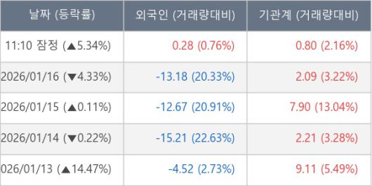 ※ 사모펀드 등 일부 기관의 순매매량은 표시되지 않음