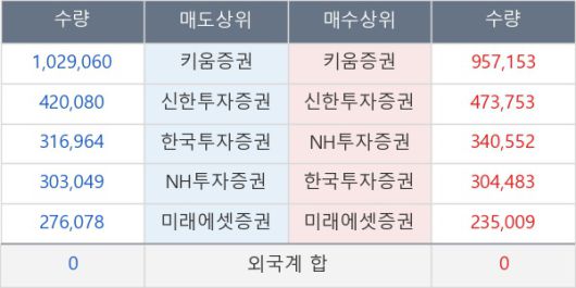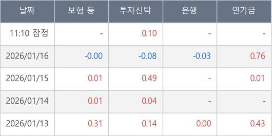[표] 주요 기관별 순매매량 (단위 만주)