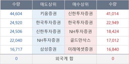 [표] 주요 기관별 순매매량 (단위 만주)