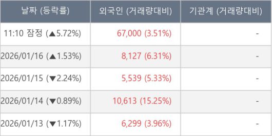 [표] 외국인ㆍ기관 순매매량 (단위 주)