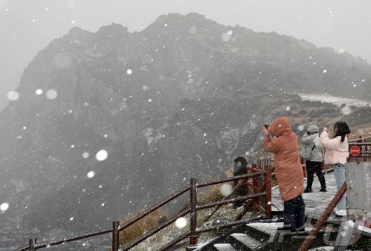 지난 11일 오후 서귀포시 성산일출봉에 눈보라가 치고 있다. 2026.1.11/뉴스1 ⓒ News1 오미란 기자 |