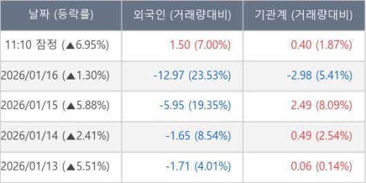 ※ 사모펀드 등 일부 기관의 순매매량은 표시되지 않음
