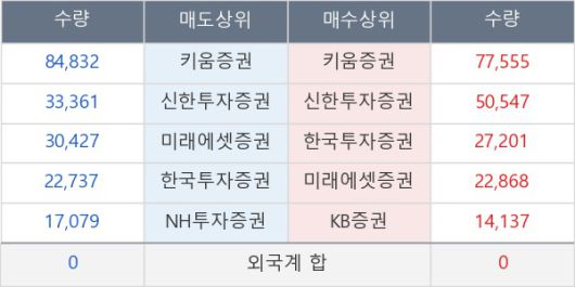 [표] 주요 기관별 순매매량 (단위 주)