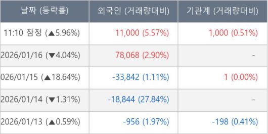 [표] 외국인ㆍ기관 순매매량 (단위 주)
