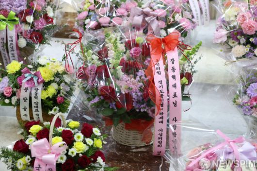 로텐더홀에 놓인 장동혁 대표 응원 꽃바구니