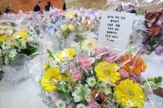[서울=뉴스핌] 정일구 기자 = 19일 오전 서울 여의도 국회 로텐더홀에 닷새째 단식 농성을 이어가는 장동혁 국민의힘 대표를 응원하는 당원들의 꽃바구니가 놓여 있다. 2026.01.19 mironj19@newspim.com |