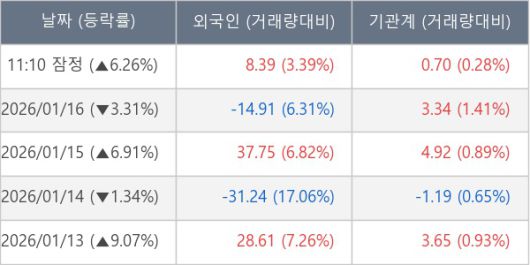 ※ 사모펀드 등 일부 기관의 순매매량은 표시되지 않음