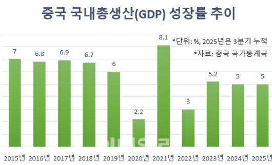 중국 GDP는 지난해 1분기(5.4%)와 2분기(5.2%) 모두 전년동기대비 5% 이상 성장하며 순조롭게 출발했으나 3분기 주요 경제 지표가 둔화하면서 4.8% 성장에 그쳤다.