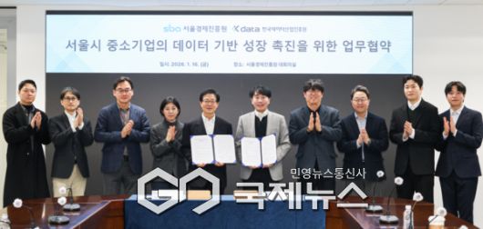 (서울=국제뉴스) 김서중 기자 = 서울소재 유망기업의 기술개발과 사업화를 지원하여 기업 경쟁력을 강화하는 중소기업 지원기관 서울경제진흥원(SBA, 대표이사 김현우)은 과학기술정보통신부 산하 데이터 전문기관 한국데이터산업진흥원(K-DATA)과 「서울시 중소기업의 데이터 기반 성장 촉진을 위한 업무협약」을 체결했다.