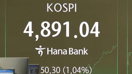 코스피가 하락 출발했지만 다시 상승하면서 4,890선을 넘어 장중 최고치를 경신했습니다.