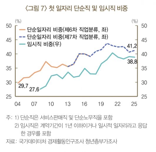 구조적 요인에 더해 최근 경기 둔화에 따른 양질의 일자리 감소도 청년 고용에 부정적 영향을 미치고 있다. 이 차장은 "구직 기간이 장기화하는 동안 청년층은 소모적인 스펙 경쟁에 매몰되기 쉽고, 불가피하게 임시·일용직으로 진입하기도 한다"며 "종국에는 '쉬었음' 상태로 빠져 노동시장을 장기적으로 이탈할 우려도 있다"고 지적했다.
