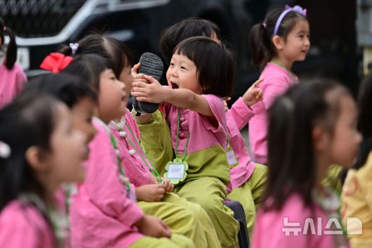 [광주=뉴시스] 이영주 기자 = 인형극을 보는 유치원생들이 즐거워하고 있다. 2025.10.17.leeyj2578@newsis.com |