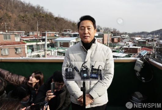 [서울=뉴스핌] 양윤모 기자 = 오세훈 서울시장이 19일 오전 관악구 신림동 675 일대 재개발 현장을 찾아 메세지를 발표하고 있다. 2026.01.19 yym58@newspim.com