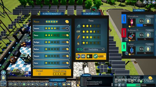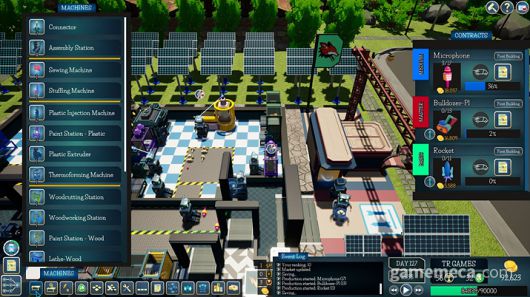공장 운영의 핵심은 자동화 시스템 구축이다. 기계를 도입하고 로봇을 배치하면 생산 라인이 자동으로 가동된다. 로봇에 스킬 포인트를 투자해 이동 및 작업 속도 등 능력치를 강화할 수 있으며, 충전기와 윤활유 공급 장치를 설치해 효율을 높이는 것도 가능하다. 시장 흐름을 읽고 트렌드에 맞는 생산품을 선정하는 전략도 요구된다.
