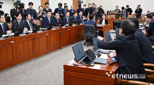 19일 서울 여의도 국회 재정경제기획위원회에서 열린 전체회의에서 이혜훈 기획예산처 장관 후보자의 출석 여부를 놓고 여야 의원들이 날 선 공방을 벌이고 있다. 이날 재정기획위에서는 이혜훈 후보자 인사청문회가 열리기로 예정돼 있었지만, 청문 자료 제출을 둘러싼 여야 갈등으로 전체회의는 개회한 채 인사청문회 상정이 되지 않아 청문회가 열리지 못하고 있다.