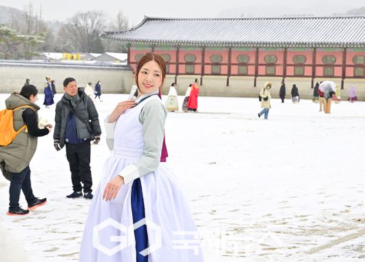 설날 연휴, 눈 내리는 경복궁 표정 (사진=안희영 기자) |