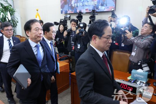 (서울=뉴스1) 신웅수 기자 = 정태호 더불어민주당 간사와 박수영 국민의힘 간사가 19일 서울 여의도 국회에서 열린 재정경제기획위원회가 정회된 후 회의실을 나서고 있다. 2026.1.19/뉴스1phonalist@news1.krCopyright ⓒ 뉴스1. All rights reserved. 무단 전재 및 재배포, AI학습 이용 금지.