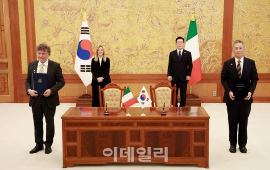 [이데일리 황병서 기자] 이재명 대통령과 조르자 멜로니 이탈리아 총리가 19일 정상회담을 갖고 반도체 산업 협력을 포함한 3건의 양해각서(MOU)를 체결했다. 이번 합의는 이재명 정부 출범 이후 유럽 주요국과의 실질 협력을 구체화한 성과로 평가된다.