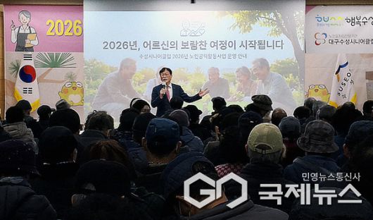 (대구=국제뉴스) 백운용 기자 = 김대권 수성구청장은 "16일 어르신들의 안전의식을 높이고 활동 전문성을 강화하는 계기가 되도록 '대구수성시니어클럽 노인공익활동사업' 참여 어르신들을 대상으로 활동 교육을 실시했다."고 말했다.