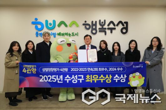 따라서 수성구청은 " 2022·2023년 최우수상, 2024년 우수상에 이어 4년 연속 우수기관으로 선정되는 성과를 거뒀는데 이번 수상은 수성구가 여성친화도시로서 추진해 온 성평등 정책과 제도 개선 노력이 실질적인 성과로 이어졌음을 보여주는 결과다."라고 전했다.