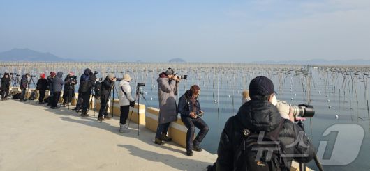 전남 장흥군 대덕읍 매생이 양식장이 겨울철 사진명소로 주목받으며 전국 사진 작가와 동호회 회원들로 북적이고 있다.(장흥군 제공, 재배포 및 DB 금지)/뉴스1 |