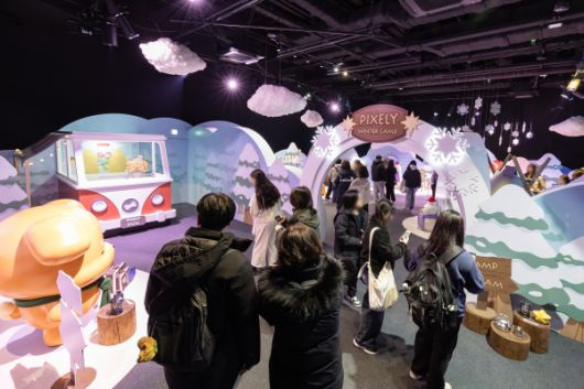 이번 전시는 단순히 보는 것에 머무르지 않고, 관람객이 다채로운 체험을 할 수 있도록 구성되어 호평을 얻었다. 우선, 귀엽고 동글동글한 '픽셀리’ 캐릭터를 겨울 캠핑장 콘셉트의 아기자기한 소품과 함께 배치해 관람객이 기념사진을 남길 수 있도록 했다. 50평 규모의 이머시브 미디어 영상존에서는 '미수반’의 세계관을 다면 스크린 영상으로 구현하며 높은 몰입감을 제공했다.
