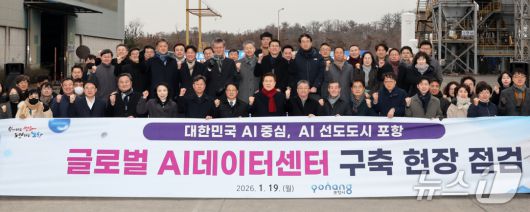 (포항=뉴스1) 최창호 기자 = 경북 포항시는 19일 간부 공무원들과 함께 남구 광명산업단지에 조성 중인 글로벌 AI 데이터센터 현장에서 추진 상황을 점검했다.