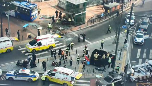 16일 오후 서울 서대문구 서대문역사거리에서 버스가 인도로 돌진해 경찰과 소방대원들이 현장을 수습하고 있다. [사진=연합뉴스] |