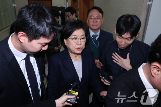 (서울=뉴스1) 신웅수 기자 = 인사청문회 출석을 위해 서울 여의도 국회를 찾은 이혜훈 기획예산처 장관 후보자가 19일 취재진 질문에 답하고 있다. 2026.1.19/뉴스1phonalist@news1.krCopyright ⓒ 뉴스1. All rights reserved. 무단 전재 및 재배포, AI학습 이용 금지.