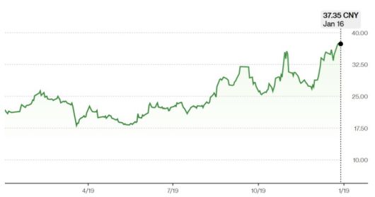 룽바이기술 주가 추이 [자료=블룸버그] |