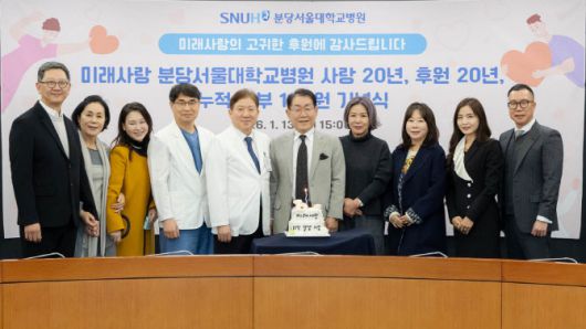 송정한 분당서울대병원장은 “20년 동안 어린이 환자들에게 큰 도움을 준 후원단체 미래사랑에 깊은 감사를 표한다”며 “전해준 후원금은 앞으로도 뇌성마비 및 어려운 처지에 있는 어린이들의 생명과 건강을 지키는 일에 소중히 사용하겠다”고 말했다.