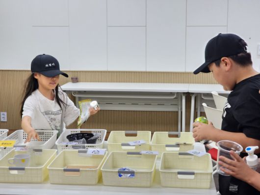 ▲양평군 자원순환 교육 일환으로 '100개의 쓰레기 속 숨은 자원을 찾아라' 프로그램이 진행되고 있는 모습이다. ⓒ 양평군 |