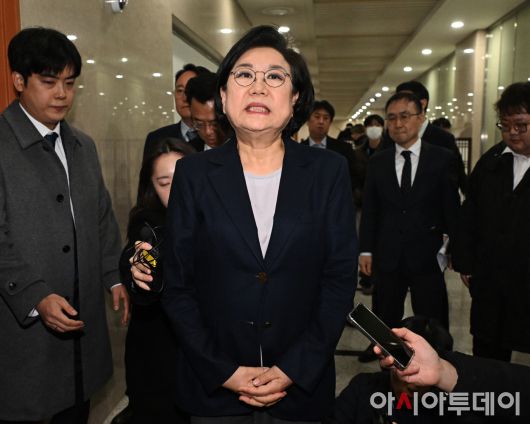 아시아투데이 송의주 기자 = 이혜훈 기획예산처 장관 후보자가 19일 국회에서 인사청문회 관련 입장을 밝히고 있다.