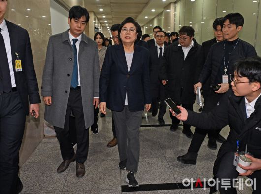 아시아투데이 송의주 기자 = 이혜훈 기획예산처 장관 후보자가 19일 국회 인사청문회 대기장소로 이동하고 있다.