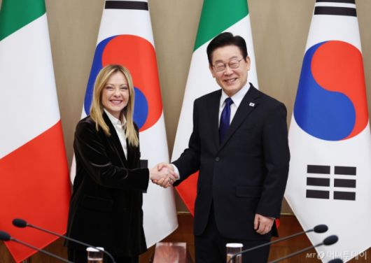 이재명 대통령과 조르자 멜로니 이탈리아 총리의 정상회담을 계기로 한국과 이탈리아가 반도체 공급망 협력 등을 위한 MOU(양해각서) 등 3건의 협력 문서에 서명했다.