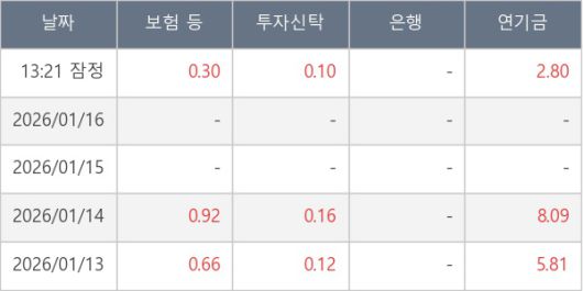 ※ 사모펀드 등 일부 기관의 순매매량은 표시되지 않음