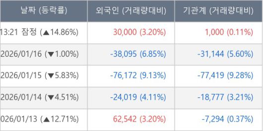 ※ 사모펀드 등 일부 기관의 순매매량은 표시되지 않음